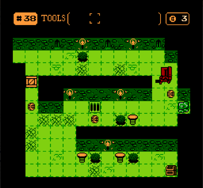 Guide hapless knights to a hungry treasure chest mimic by placing directional tiles, springs, and boxes to avoid obstacles and enemies getting in the way of the knights and their treasure.
